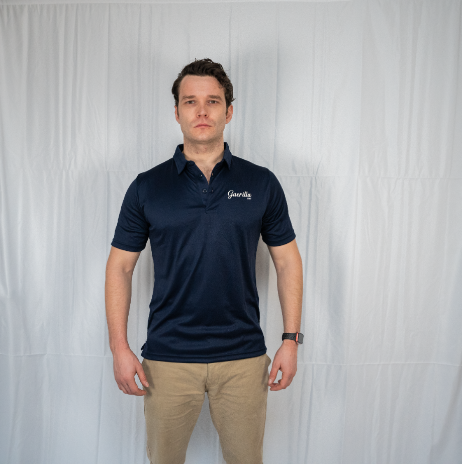 Midnight Blue Performance Polo – Crafted from breathable, moisture-wicking fabric, this golf polo ensures you stay dry and comfortable while maintaining a sharp, athletic look.